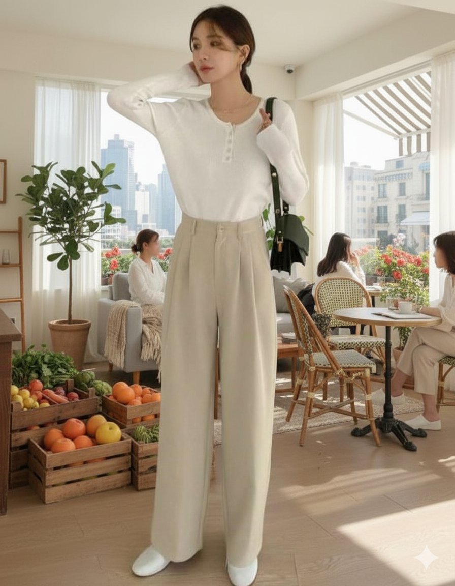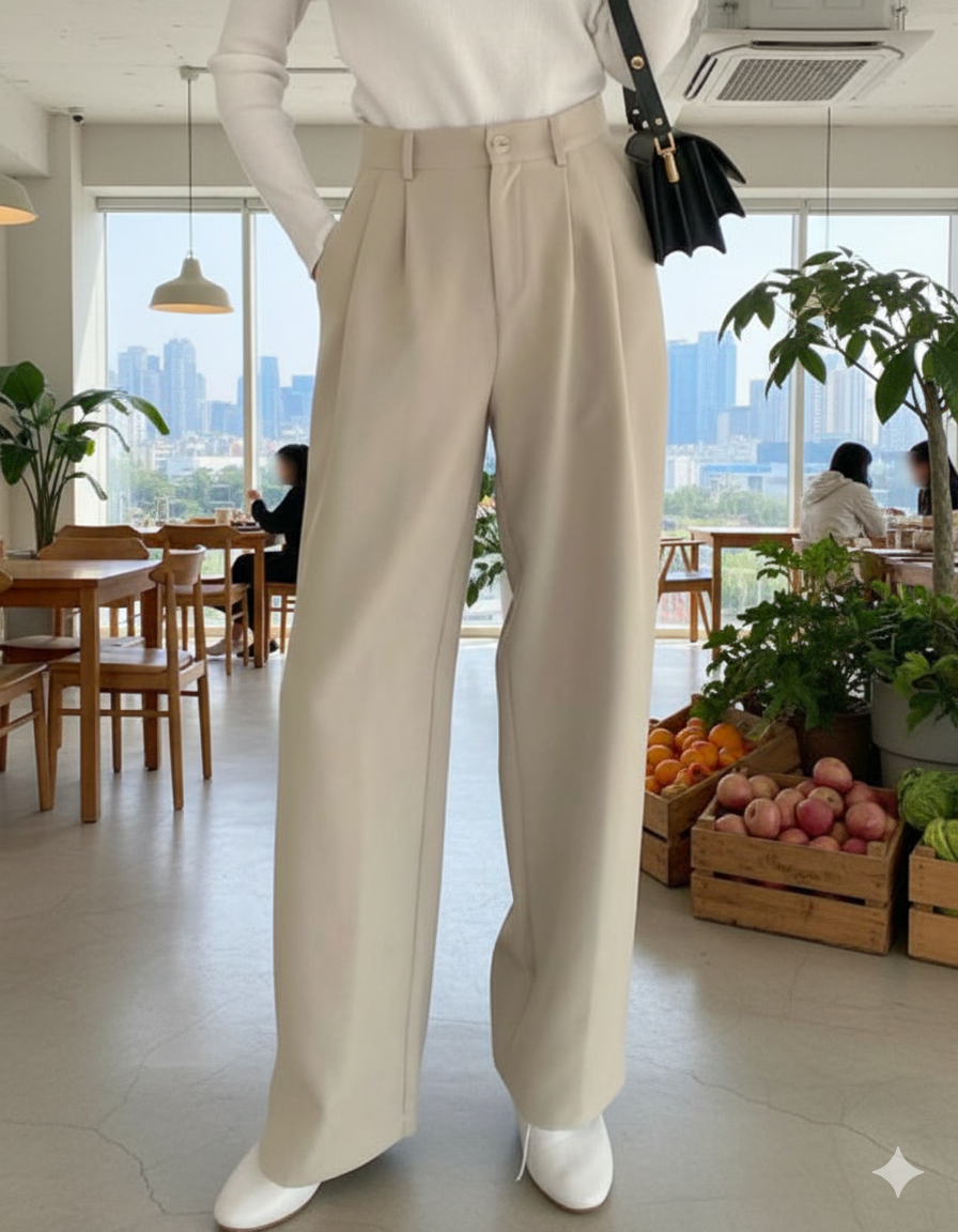 BROADSTAR’s Light Beige High-Rise Baggy Fit Korean Pants. Designed for a relaxed yet elevated silhouette, these pants feature a flattering high-rise waist and an oversized baggy fit inspired by Korean street fashion. The soft beige tone keeps the look minimal and versatile, making it perfect for everyday styling with effortless Gen-Z cool.