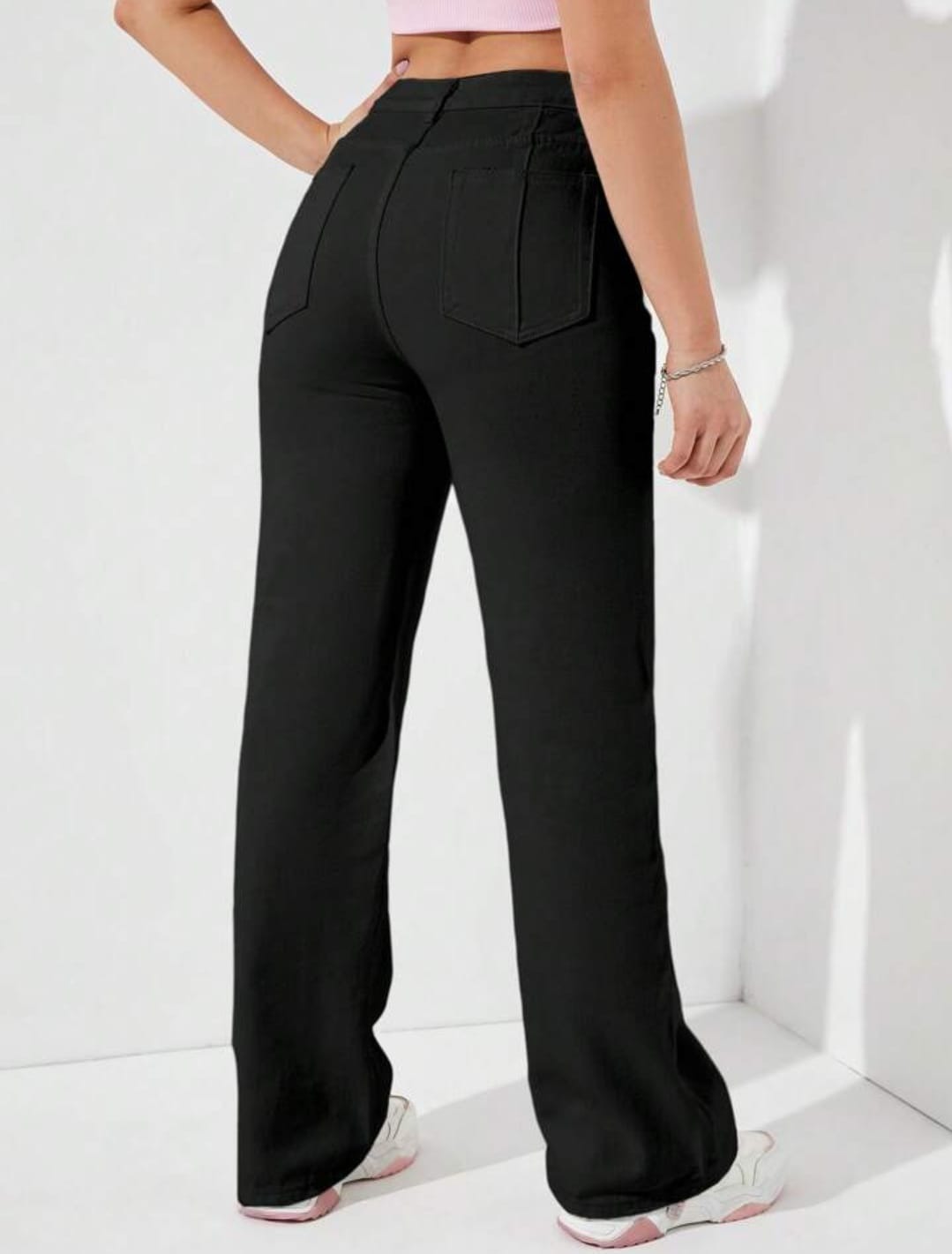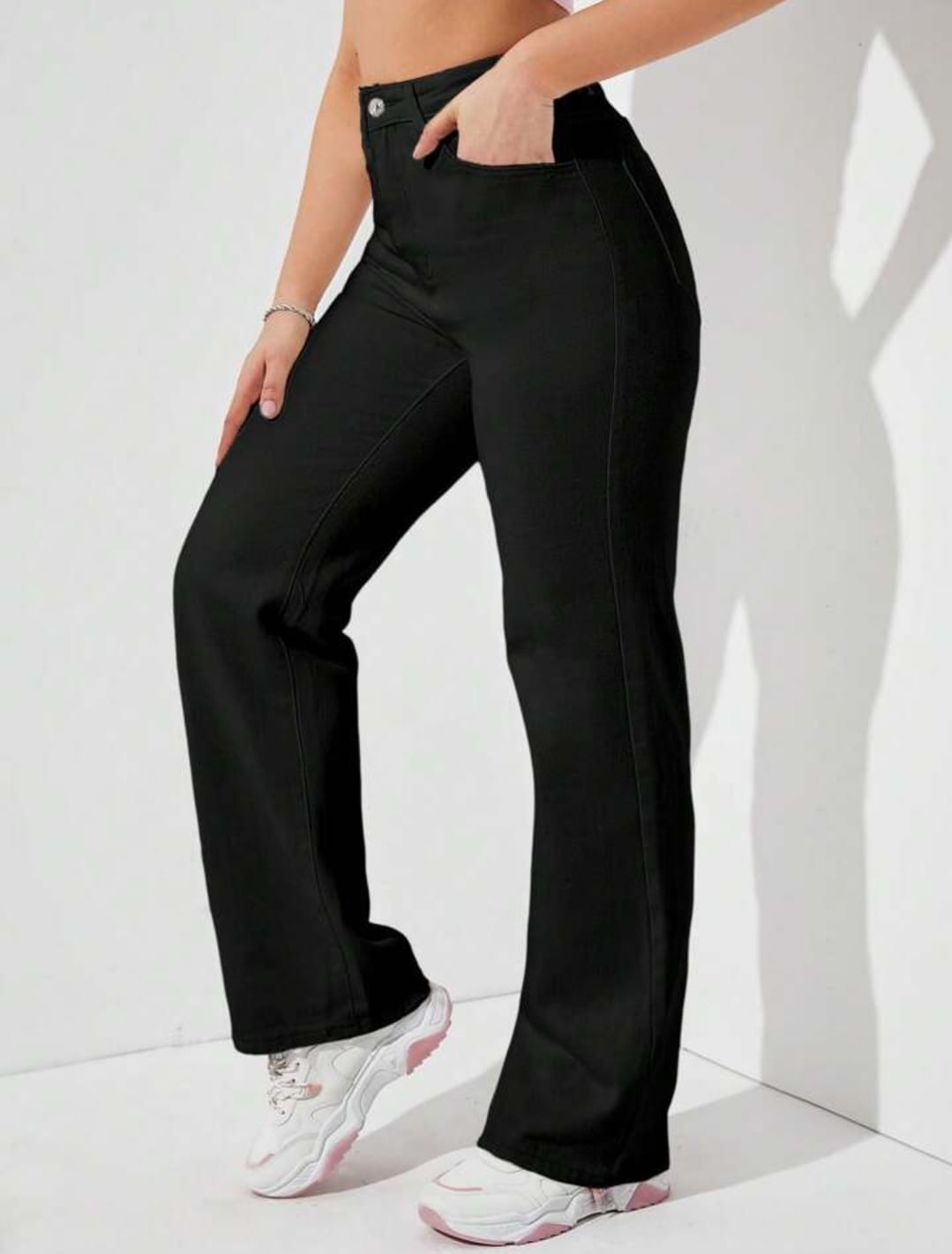 BROADSTAR Women Black High-Rise Straight-Fit Denim features a flattering high-waist fit, clean straight silhouette, and deep black wash. Comfortable stretch fabric makes it perfect for everyday wear, work looks, or effortless street-style outfits.